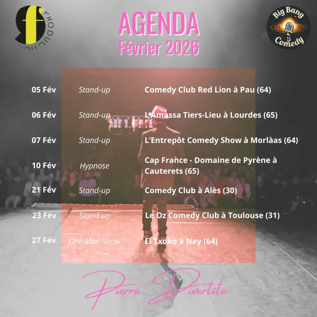 _ Organisateur de plateau de stand up: Pierre Divertito crée également des plateaux de stand up avec différents artistes.
