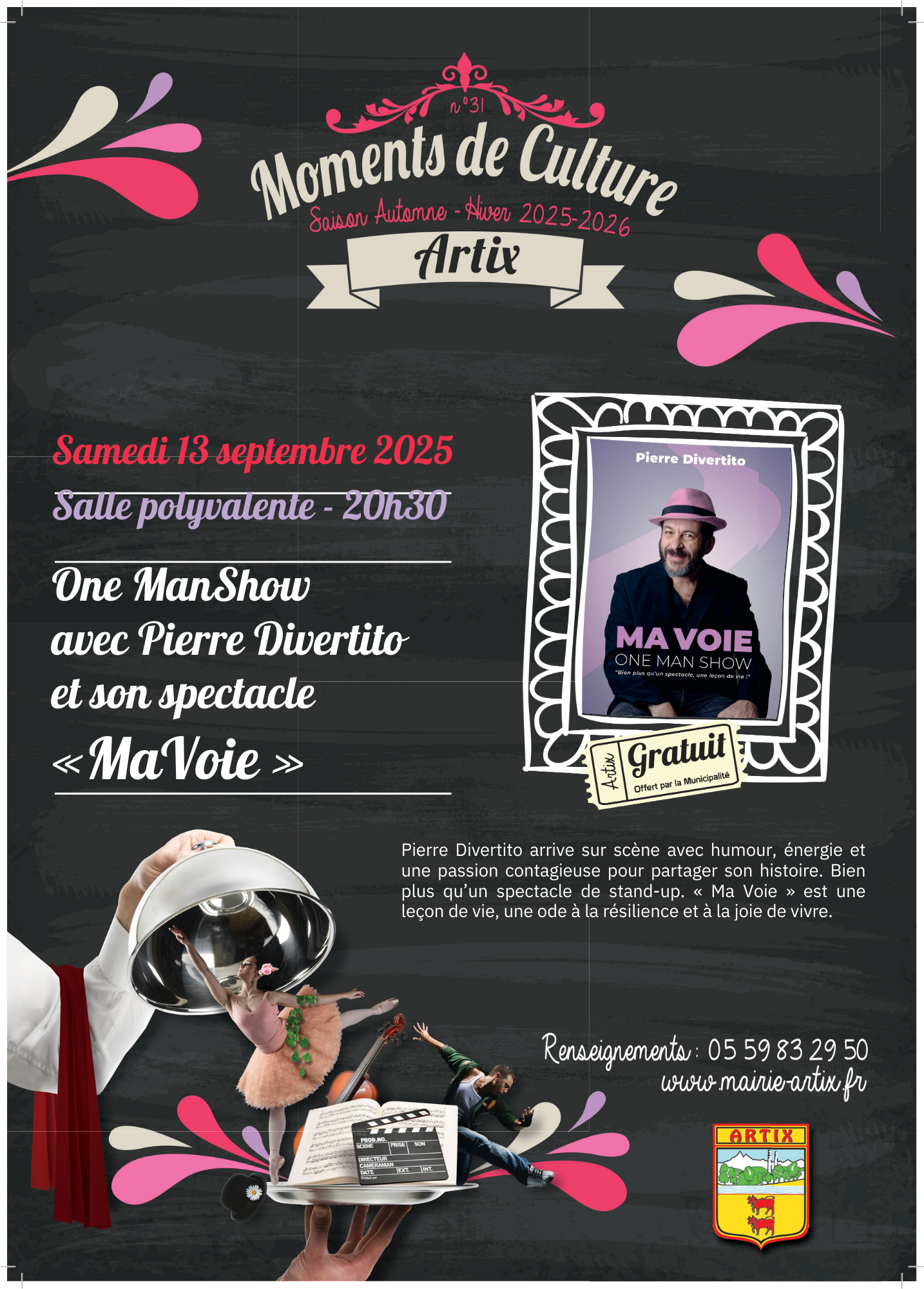 Samedi 13 septembre 2025 à 20h30 Venez assister au one man show de Pierre Divertito Après le festival d'Avignon, je jouerai à la salle municipale d'Artix Spectacle offert par la […]
