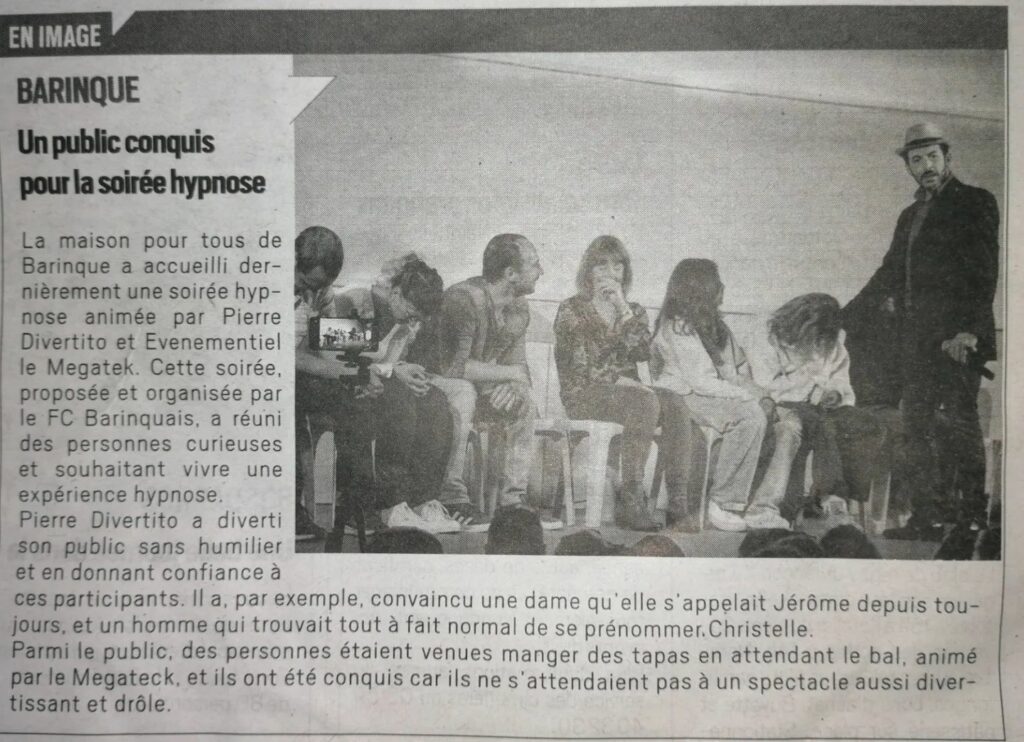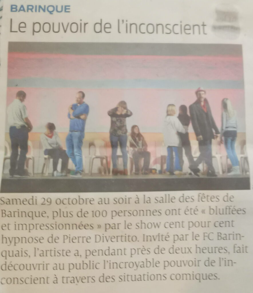 Spectacle d’Hypnose à Barinque pour le club de Foot.